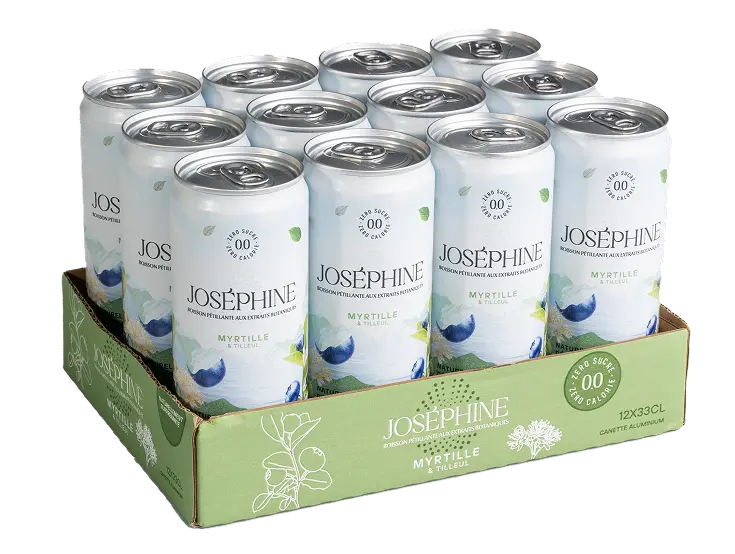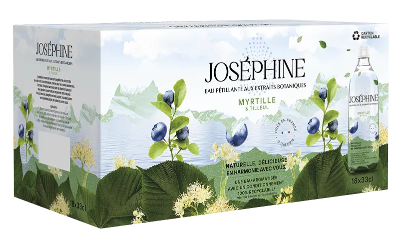 If you’re reading this, it’s because you’re interested in the content of what you’re drinking, and you’re right to be. Joséphine contains only sparkling water, real blueberry extract and linden extract, known for its ancient botanical virtues. That’s all there is to it. It’s sourced in the Alps and we add only 100% natural ingredients. More than just a water, Joséphine is an experience, with refreshing bubbles bouncing off your taste buds in a perfect duo: the blueberry has never been so well enhanced as by the linden blossom. You’ll love your first sip, and all the others too. And when you’ve finished, recycle the bottle – that’s what it’s there for.