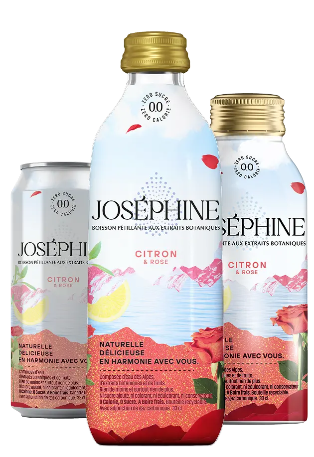 Joséphine contains only sparkling water and extracts of real fruit and botanicals, known for their ancestral virtues.